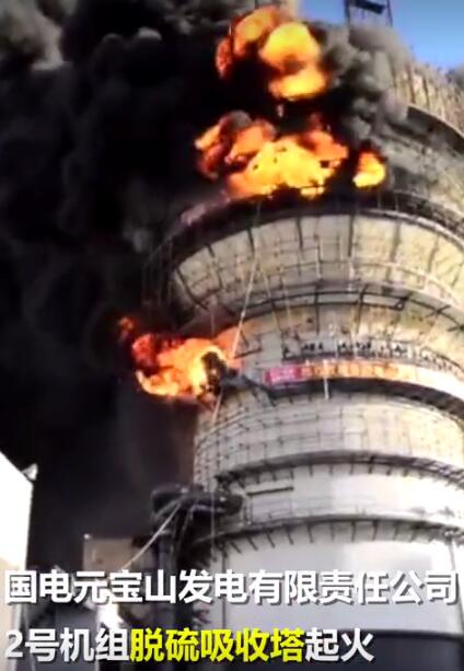 圖(1)國(guó)電元寶山發(fā)電廠,脫硫塔施工時(shí)著火