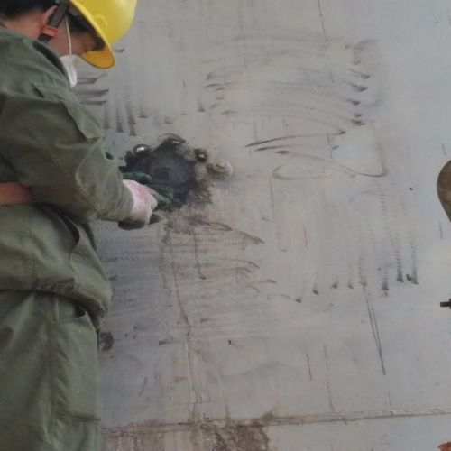 ④ 調(diào)和并涂抹KNM17脫硫塔漏液堵漏材料,用刮涂工具對漏點行全面治理;